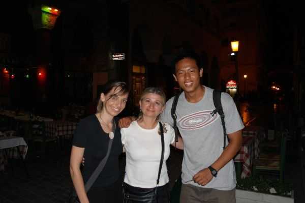 Yanımızda da ayakta duran bir turist grubu vardı. Baktılar biz kalkıp fotoğraf çekiyor, videoya filan alıyoruz, bize bu dans nedir diye sordular, biz de dedik ki “Biz Yunan değiliz, Türküz, ama biz de bu dansın aynısını yapıyoruz ve halay diyoruz adına”. Sonra garsona sorduk hep beraber bu dans nedir diye, “Sirtaki” demez mi – sirtakinin halay versiyonu olduğu kesindi :) Turistlerden biri, sanırım adı Daniela idi, bana öğretir misin bu dansı dedi ve başladık kız ile ben halay çekmeye. Çabuk da öğrendi İngiliz kız, ve çok hoşlandı bizim halaydan, gerçekten çok tatlıydı. Bu arada eşim de Malezya’lı gence Türk-Yunan ilişkileri konusunda tarih dersi vermeye başladı. Bunlar da o turistlerle bu güzel geceden bize harika bir anı olarak kalacak fotoğraflarımız…