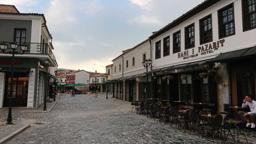 Tiyatro binasının bulunduğu caddeden karşıya geçince eski şehir meydanına varılıyor. Burası tahmin edildiği gibi Osmanlı egemenliği zamanındaki mahallelerinin bulunduğu yerler. Çok ciddi restore edilmiş, neredeyse eski şehri yeniden kurmuşlar ve bu yüzden tarihi dokusu tamamen yok olmuş ama yine de hoş bir yer. Ağırlıklı olarak kafeler ve butik oteller var, dükkanların çoğu da hala boş. Eski dokusu yerinde kalsaymış çok daha güzel bir hava katarmış aslında şehre. Bu eski Osmanlı mahallesinde bir saat kulesi ve cami var. Caminin adı İlyas Bey Cami. Cami 1496 yılından kalma, Kurşun kubbesi sayesinde Balkanlardaki en güzel cami olarak nitelendirilmiş, içindeki freskleri yapması için sanatçılar 18. yüzyılda Osmanlı İmparatorluğundan, muhtemelen İstanbul’dan özel olarak getirtilmiş.