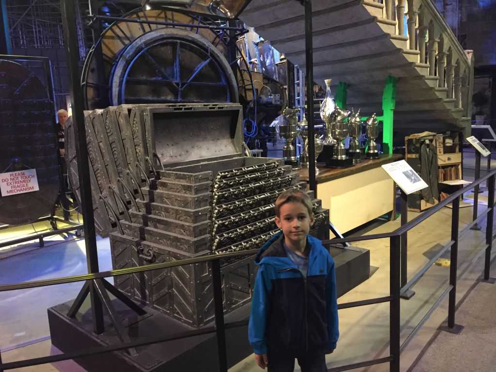 Bu bölümde özellikle küçük çocukların ilgisini çeken kendilerinin düğmelere basarak hareket ettirebildiği sahne dekorları da var. Mesela Profesör Lupin’in kendi kendine açılıp kapanan bavulunu bir düğmeye basarak harekete geçirmek mümkün. Aynı şekilde içinde kendi kendine havuçları kesen bir bıçağın olduğu, örgünün şişler tarafından kendi kendine örüldüğü, ütünün kendi kendine ütü yaptığı Weasleylerin salonundan bir bölüm var. Burada da minikler farklı düğmelere basarak az önce saydığım aletleri çalıştırmak için bir kuyruk oluşturuyorlar.