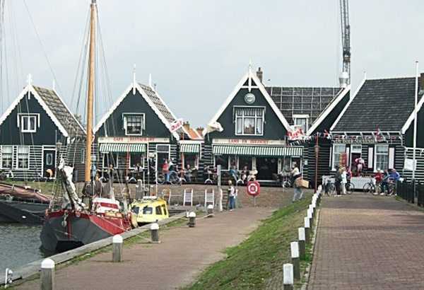 Marken’e yarım saatlik bir deniz sefasından sonra varınca iyi ki gitmişiz dedik. Burası da çok güzel küçük bir kasaba ve aslında bir ada – yani Marken adası. Ama Marken’ı ana karaya bağlayan denizi doldurarak yapılmış bir yol da var, yani otobüsle de ulaşılabilmesi ondan. Marken’e tekne ile yaklaşırken sahildeki evler insanı kendine çekiyor. Zaten hepsi ya kafe veya restoran ya da hediyelik eşya satan dükkan olduğu için hepsine girip çıkabiliyorsunuz.