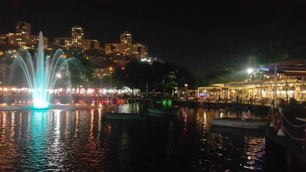 Göletin fıskiyeleri ile yapılan ışık oyunları harika bir görsel şölen oluşturuyor…