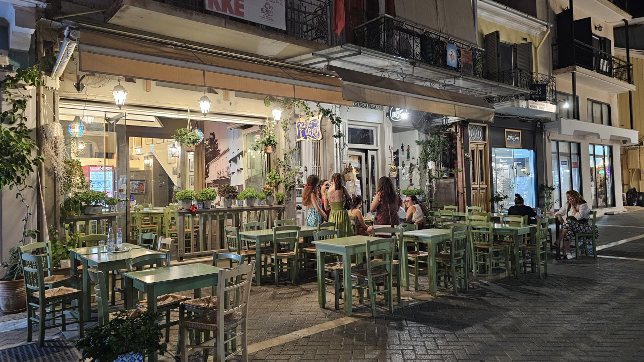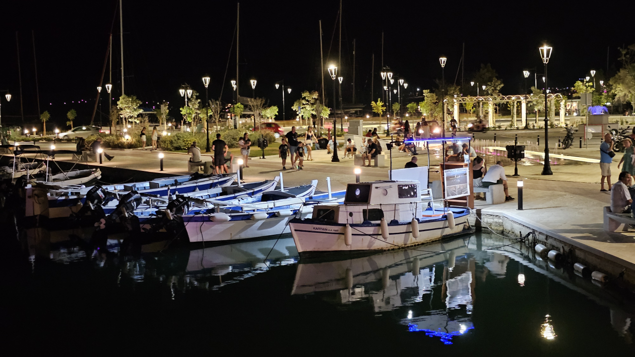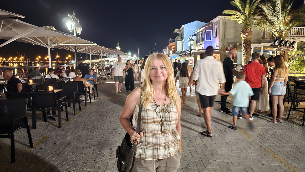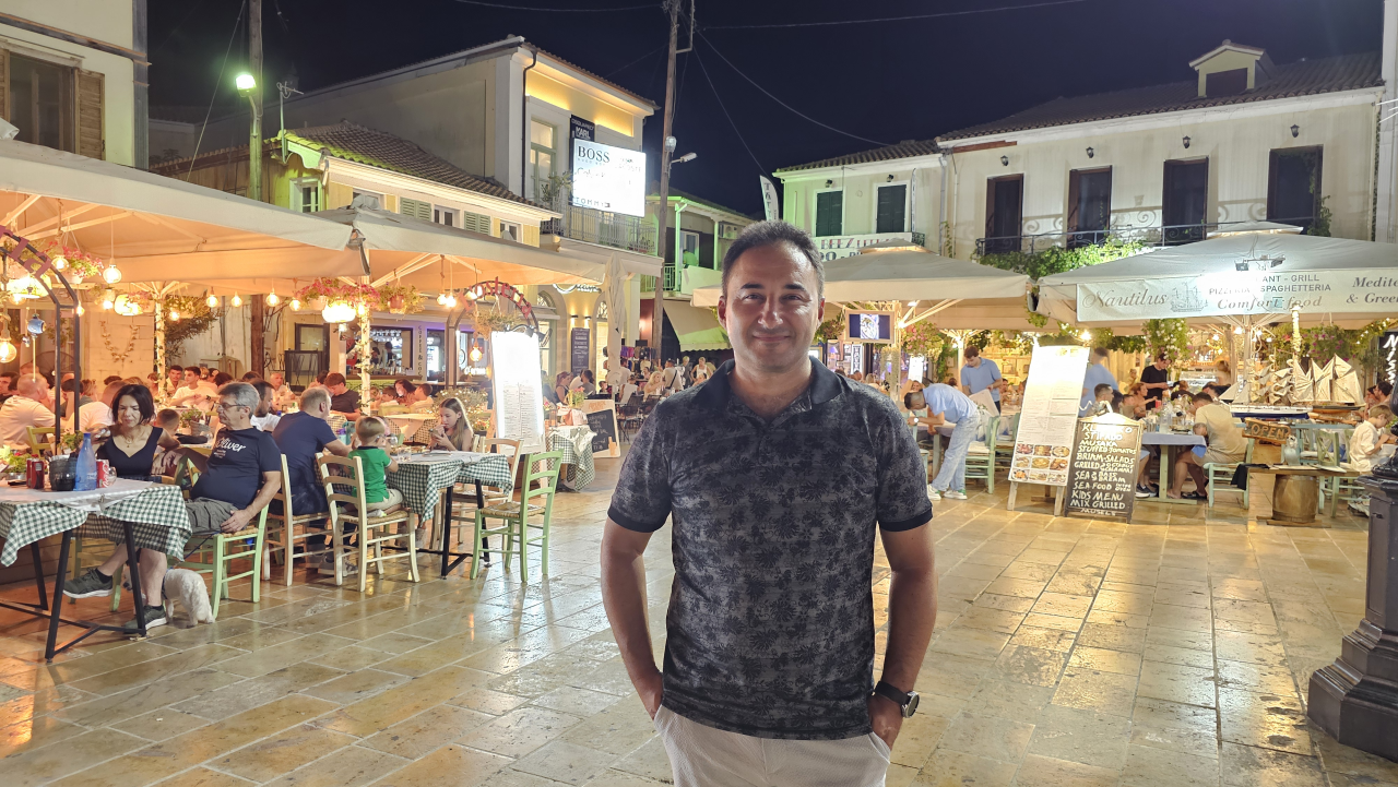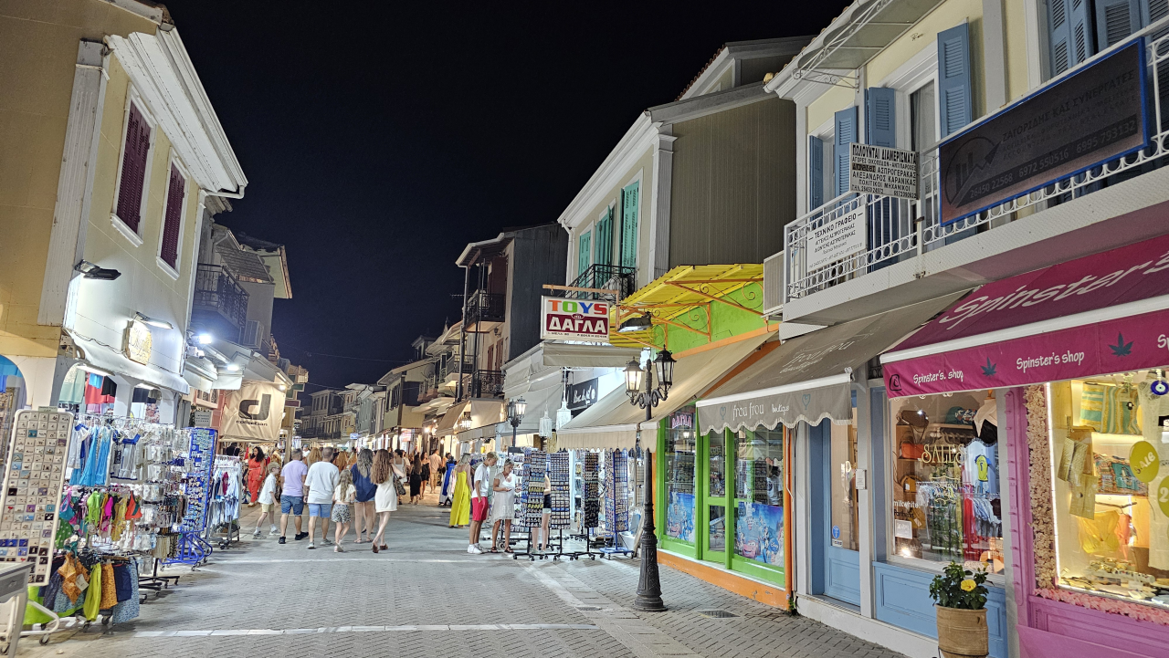 Lefkada merkezi, adayı keşfetmeden önce bir soluklanma ve yerel yaşama karışma noktası gibi. Biz bütün gece o sokak senin bu sokak benim gezerek adanın ruhunu içimize çektik.
