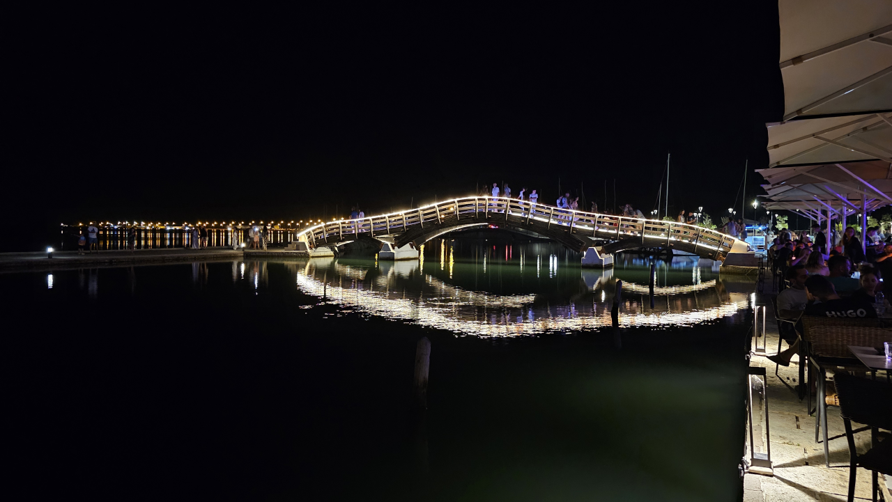 Şehrin en tanınan simgelerinden biri, limanı lagünle birleştiren tahta köprü. Hem gün batımında güneşin suya yansıdığı saatlerde, hem de gece ışıklarının romantik havasında hoş bir manzara sunuyor.