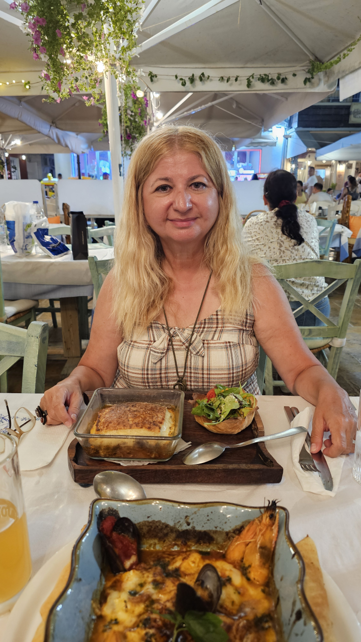 Lefkada Adası’nın kuzeyinde yer alan şehir merkezine gidişimiz biraz maceralı oldu çünkü yaklaşık 45 dakika arabamızı park edecek yer aradık. Deniz gününü bitirip yemek yemeğe gelen herkes otoparkları hemen doldurmuştu. Aç aç epey bir dolandık.