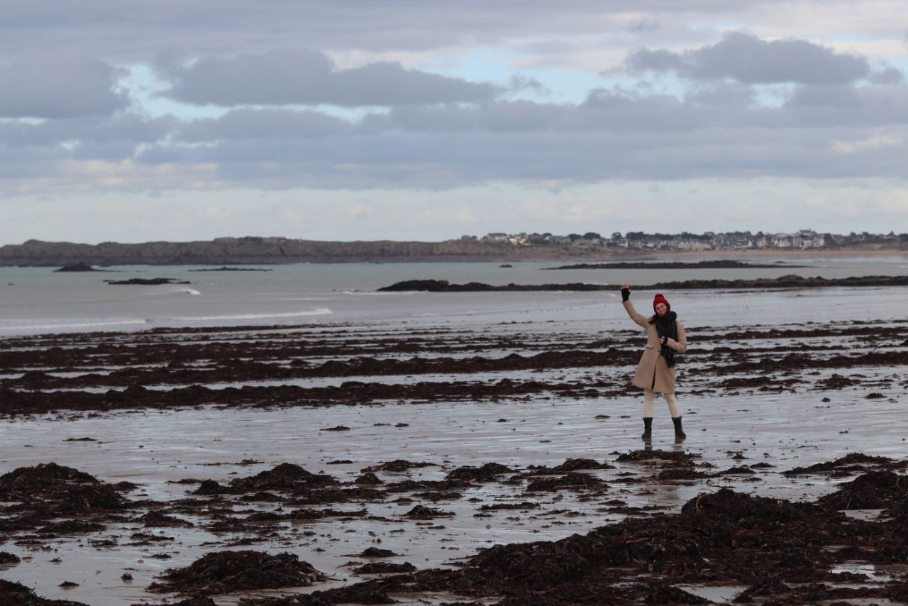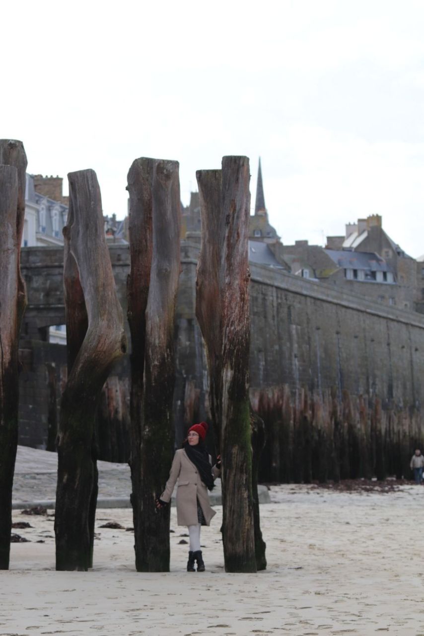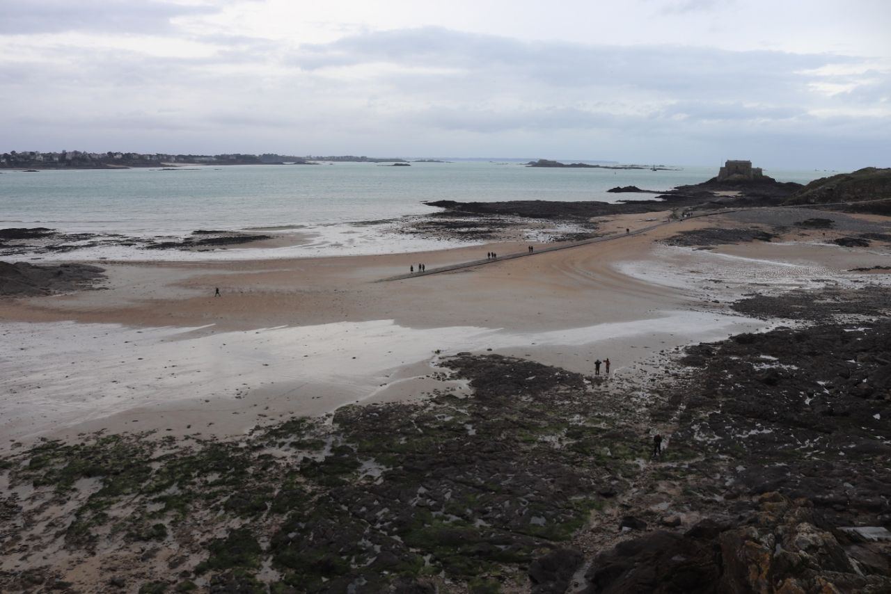Eski şehirde, her yere yürüyüş mesafesinde bir otelde kaldığımız için Saint-Malo’yu gerçekten yaşayarak gezdik. Surlara çıkıp şehri çepeçevre yukarıdan dolaştık, sonra kumsala inip gelgitin ortaya çıkardığı sahilde yürüdük. Birkaç saat önce deniz olan yerde yürümek çok etkileyiciydi.