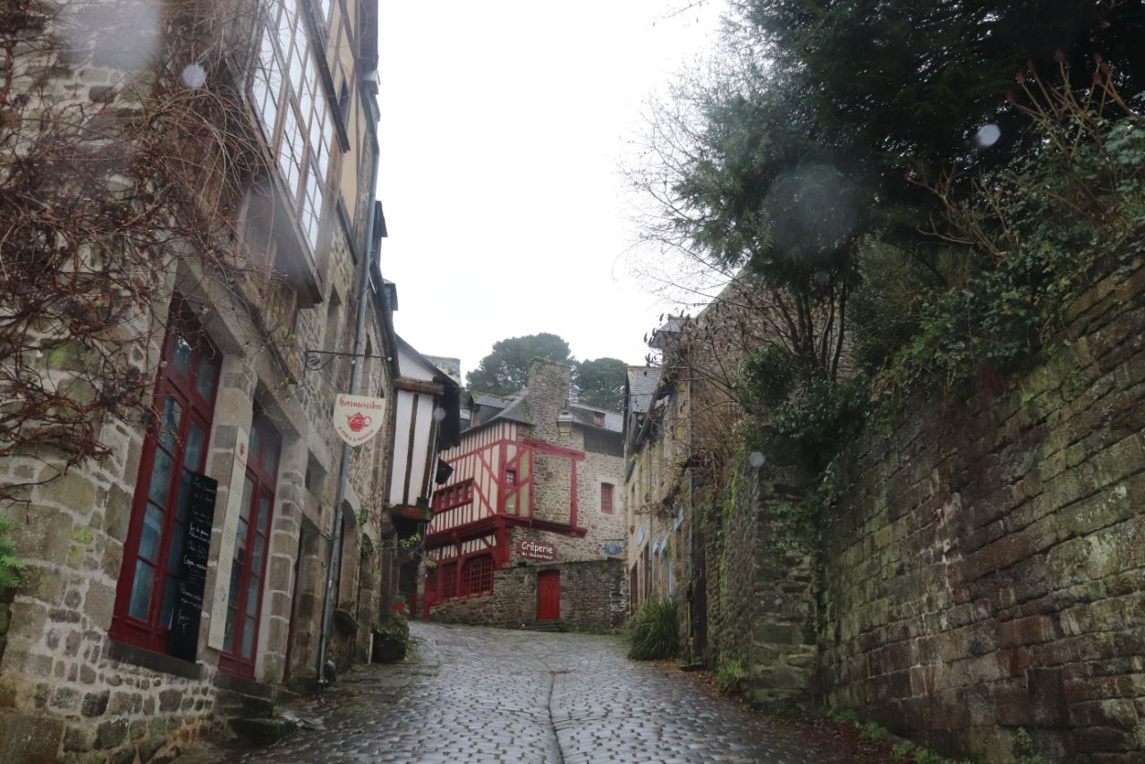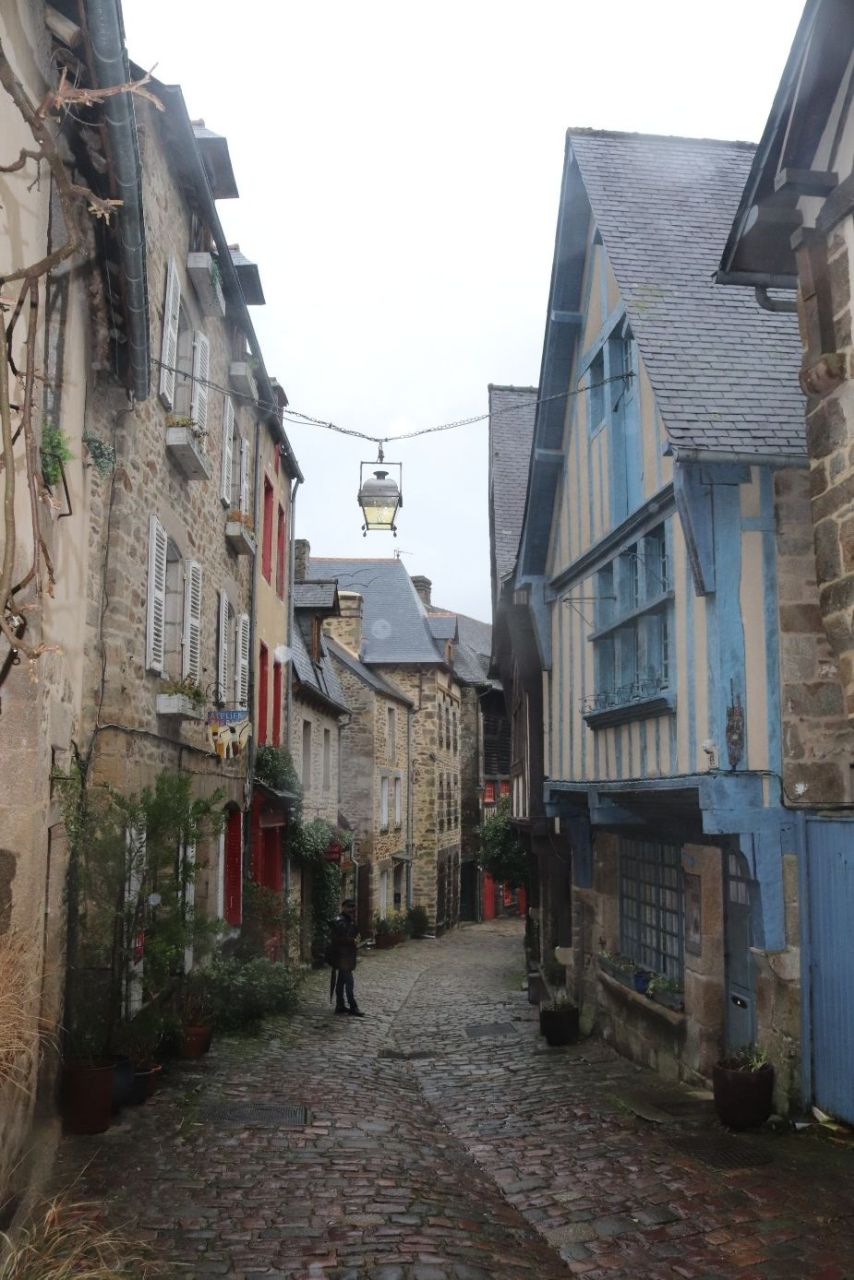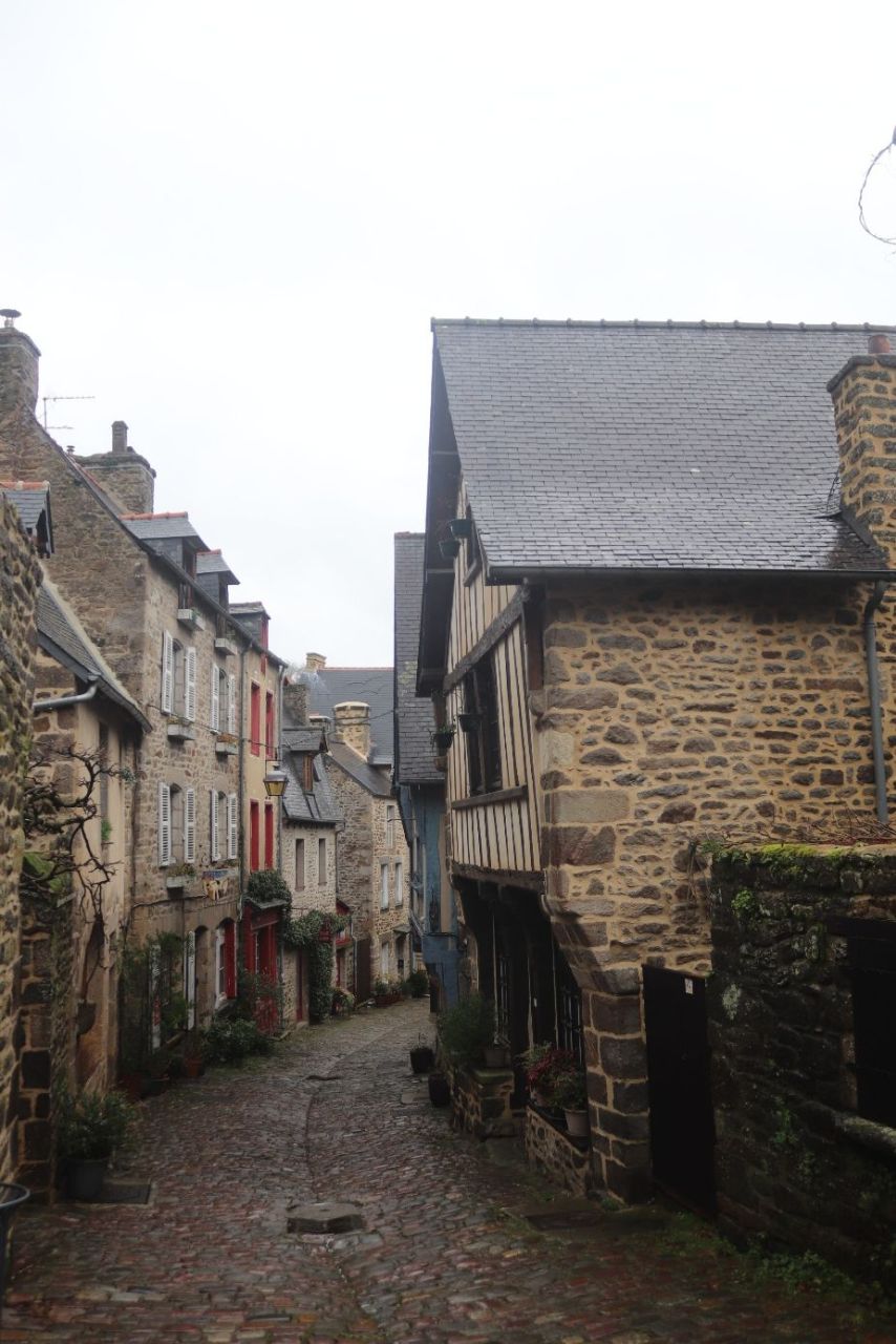 Sabah St. Malo’dan ayrıldıktan sonra Bretanya’nın en güzel şehirlerinden biri olduğunu düşündüğüm Dinan’a doğru yola koyulduk. Gezimiz boyunca yağmura yakalandığımız tek şehir burası oldu. Yağmur yüzünden sokaklar sakindi, ortalıkta çok fazla insan yoktu. Bu da Dinan’ı gezerken sanki şehir sadece bize aitmiş gibi, çok özel ve dingin bir his verdi.
