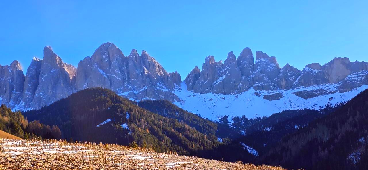Alpler, daha klasik, devasa kar kütleleriyle kaplı, geniş sırtlı dağlar ama Dolomitler çok daha dramatik, dik, adeta bıçakla kesilmiş gibi duran kuleler, sivri zirveler ve derin uçurumlardan oluşan dağ yapıları. Bizim Ortisei (Val Gardena) civarında bu meşhur sivri kayalıkları görme şansımız oldu.