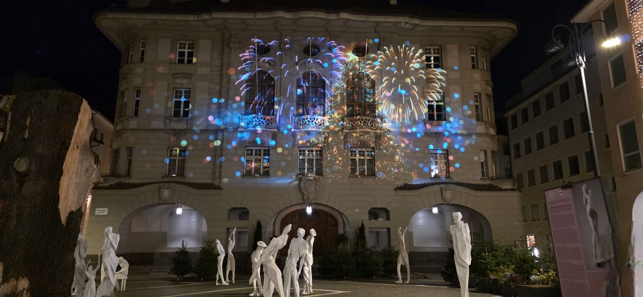 Hofburg Brixen (Piskopos Sarayı) bu yıl Erna Valentini’nin yarattığı Oops maskotu ve ışık oyunlarıyla tam bir masal dünyasındaymışız gibi hissetiriyordu.