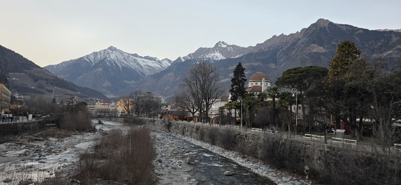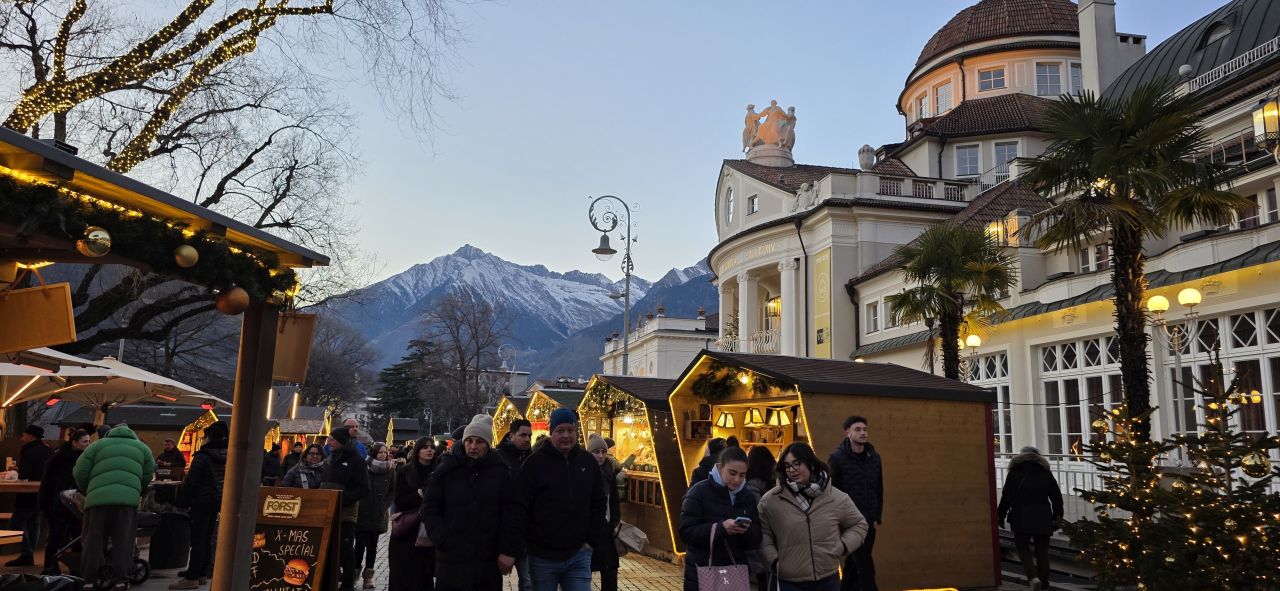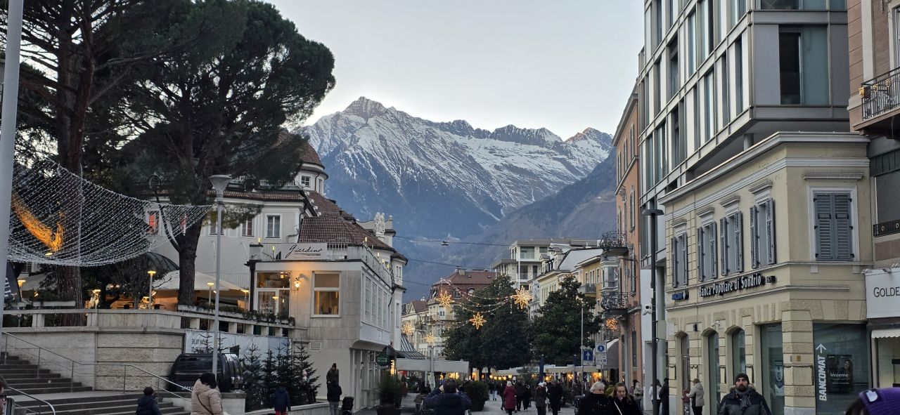 Avusturya İmparatoriçesi Sissi’nin de favorisi olan Merano, Alpler’in eteğinde olmasına rağmen kendine has iklimi ile palmiyelerin ve kaktüslerin yetiştiği bir vaha. Termal suları, nehir kenarındaki yürüyüş yolları (Passirio) ve görkemli termal otelleriyle Merano, gezinin en dinlendirici ve aristokrat ruhlu noktasıydı.
