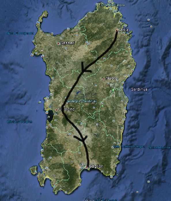 Artık güneye inme vakti geldi. Rotamız Oristano şehri üzerinden başkent Cagliari… Ada deyip geçmeyin, Akdeniz’in ikinci büyük adası Sardinya. Bir baştan ötekine gitmemiz (Olbia’dan Cagliari) yaklaşık 5 saat sürdü.